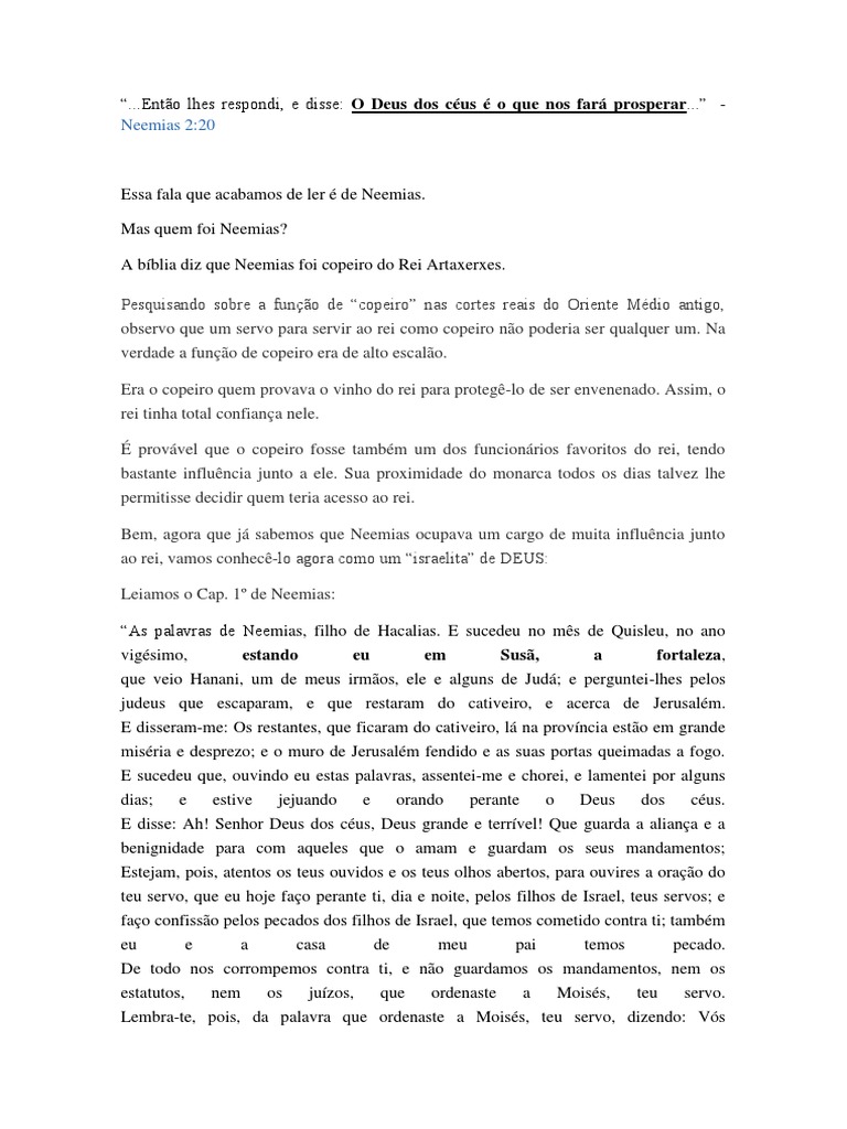 Neemias Copeiro Do Rei : Livro De Neemias Reconstruindo As Muralhas De Jerusalem / Por que estais tão preocupados?.. Só deus dá a inteligência dos sonhos. E sucedeu no mês de quislev, no ano vigésimo, estando eu em susã, a fortaleza, 2 que veio hanani, um de meus irmãos, ele e alguns de judá; Este sonho tem me perturbado muito. Jul 21, 2021 · deus, nossa memória! O faraó mandou chamar josé que foi trazido rapidamente do calabouço.